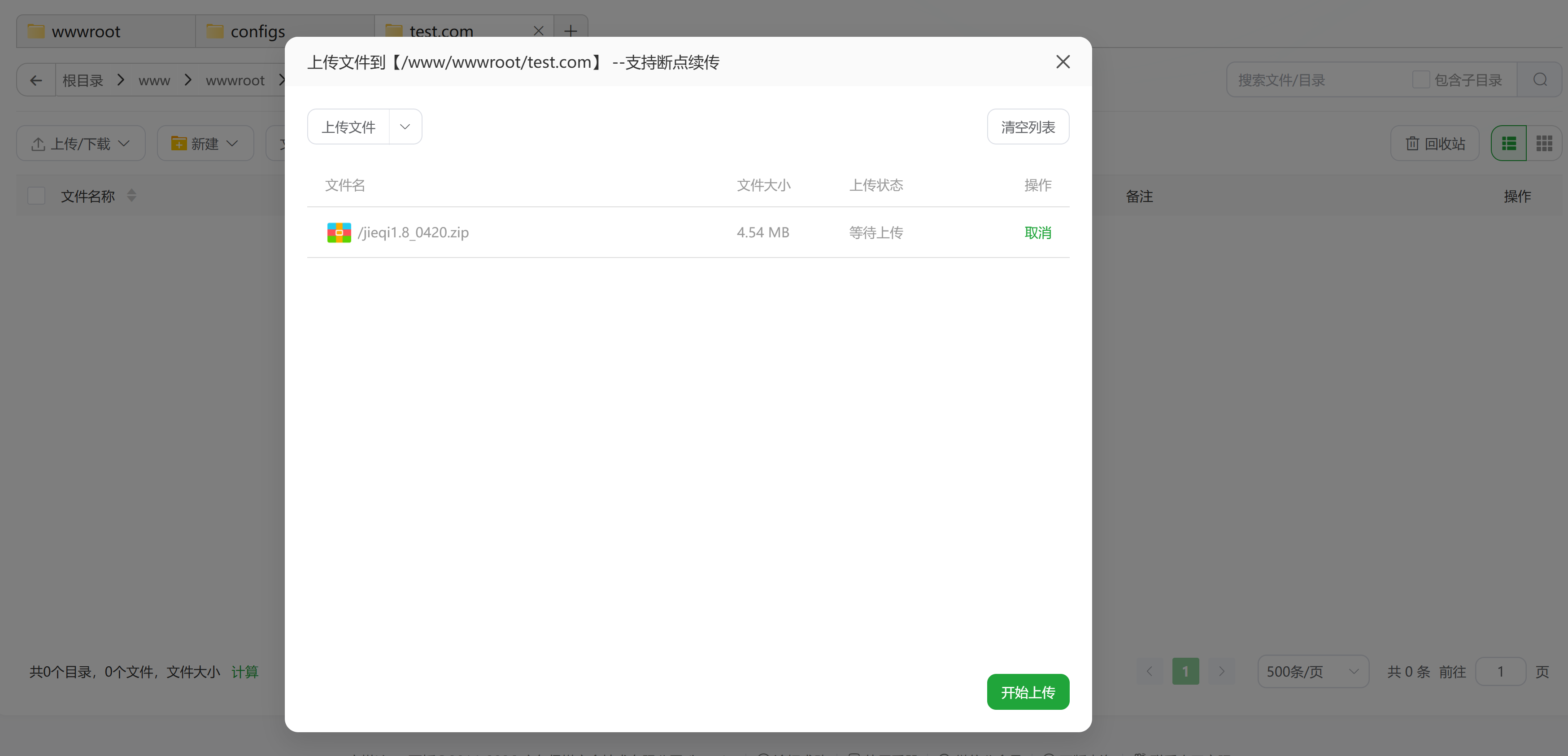 将下载好的杰奇CMS 1.8 压缩包上传到网站根目录并解压,确保目录可写权限,以便程序创建缓存和日志文件。